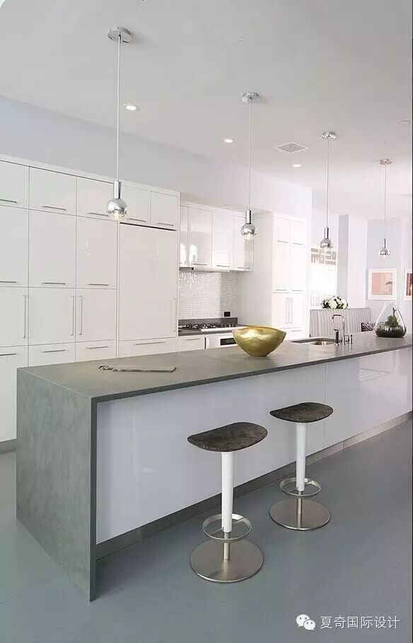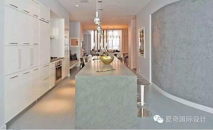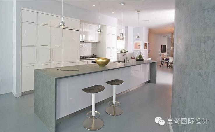 开放式厨房和吧台式餐台。