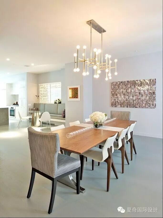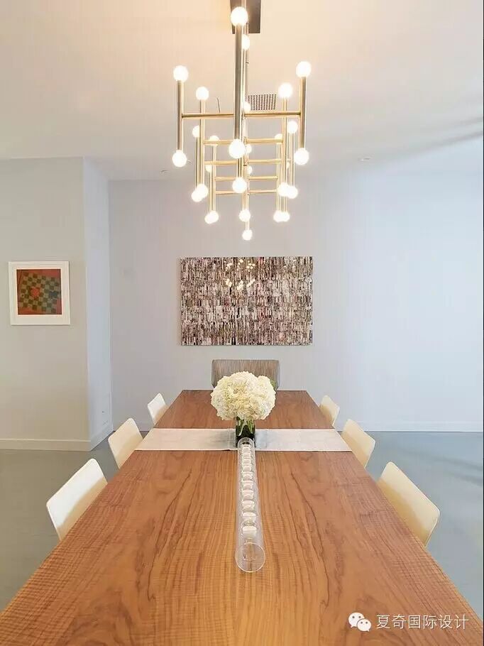 充满艺术感的吊灯,优雅复古的餐桌。
