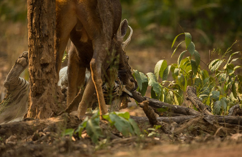 苏迪尔表示,能如此近距离地拍摄到老虎捕猎的整个过程,实属难得。