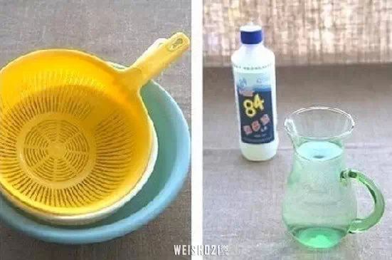 ▌将84消毒液和清水,以1:200的比例兑在一起,将需要“换肤”的塑料制品放入,浸泡两个小时。再用清水反复冲洗干净就可以了,效果好又不会产生任何腐蚀作用,浸泡过塑料框的水还可以倒入马桶中,还能起到清洁马桶的作用。