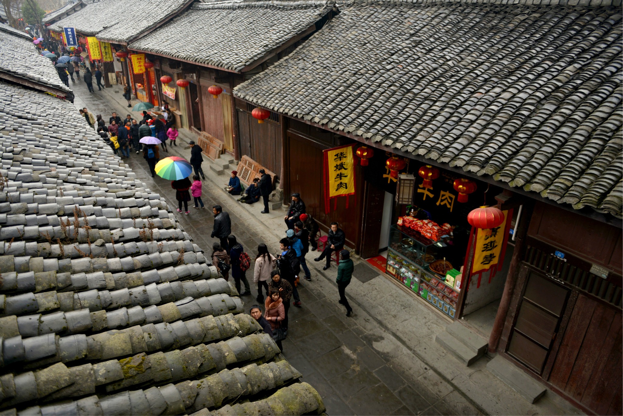 嘉阳小火册附近有一个建在山顶上的船型古镇,建于明崇祯年间,是正儿八经的古镇,保留着原始的老街。阳光暖暖的下午,花五块钱沏一杯盖碗茶,可以在木椅上坐一个下午,晒太阳,聊天,看书,或看充满市井气息的居民生活。