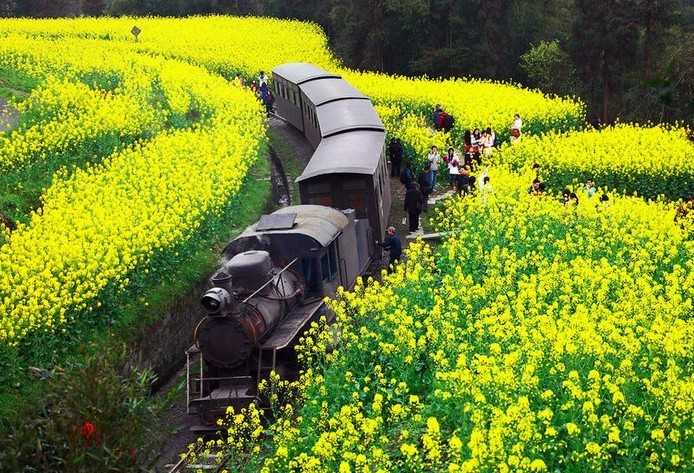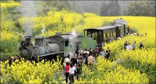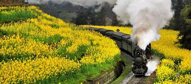 三月 嘉阳小火车 罗城古镇 蒸汽式小火车行驶在群山幽壑、层层梯田之中