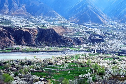 春季,金川成为一个拥有雪域高原规模最大梨花奇观的世外桃源,大渡河两岸绵延十万亩的梨花,在蓝天的映衬下,一幅“千树万树梨花开”的画卷展开,连“人间仙境”都不足以形容。