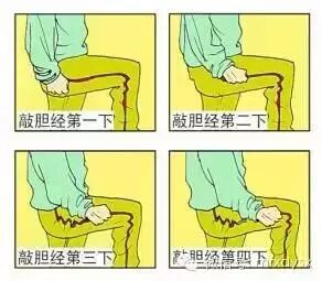 由于敲胆经可以使胆经的活动加速,将大腿外侧堆积在胆经上的垃圾排出,因此,这个运动直接就会使臀部和大腿外侧的脂肪减少,大约一至二个月就会感觉裤管变大了。