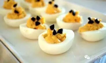 14.迅速蛋皮固定,盛入盘中,淋上蕃茄酱即可。 魔鬼蛋(辣)