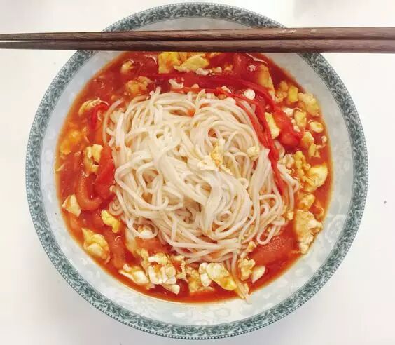 面条、西红柿、鸡蛋、盐、味精、香油、老姜片