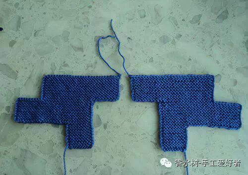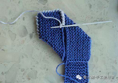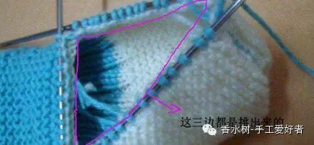 5、后增加的15针,用平针织。另外两边,两上两下。