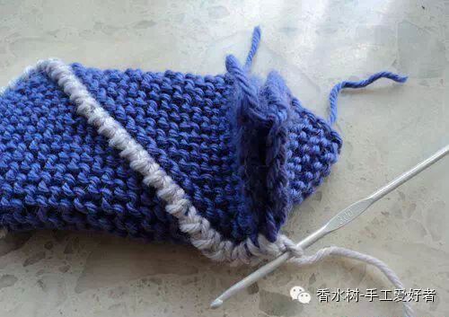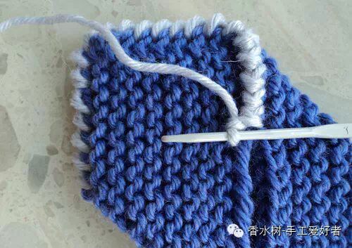 10、用淡色毛线钩出花边接缝。