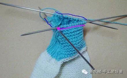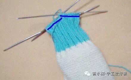 10、缝合到袜边的时候,顺势在边边上挑针。