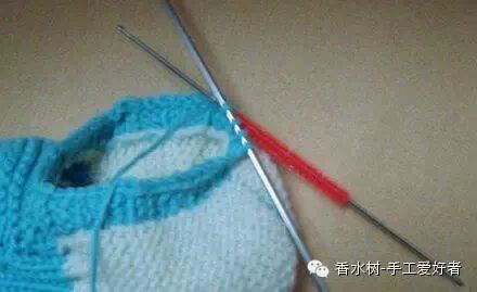 7、同步前步骤一样织16行,6cm长。然后把剩下的全部收针。