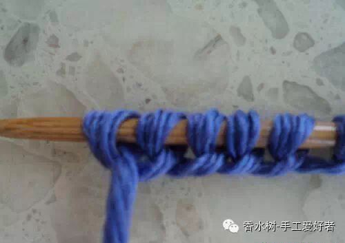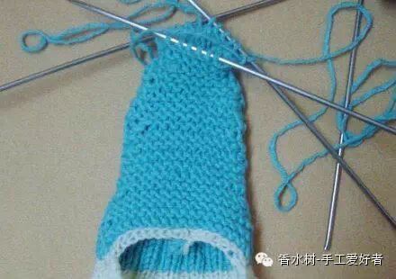4、这一步还是和前面一样,不过换了一个姿势。开始用四根针织